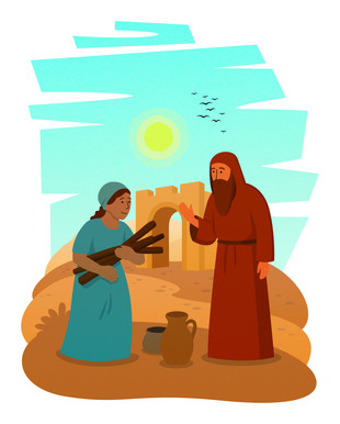 Die Witwe bringt Elija Wasser.
